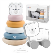 VIGA PolarB Zestaw Miś Polarny Drewniana Piramidka + Miś Polarny do Ciągnięcia