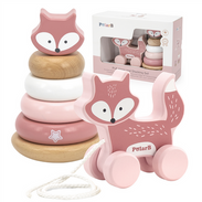 VIGA PolarB Zestaw Lisek Drewniana Piramidka + Lisek do Ciągnięcia