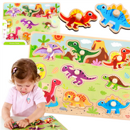 TOOKY TOY Drewniane Puzzle Montessori Układanka Dinozaury Kształty