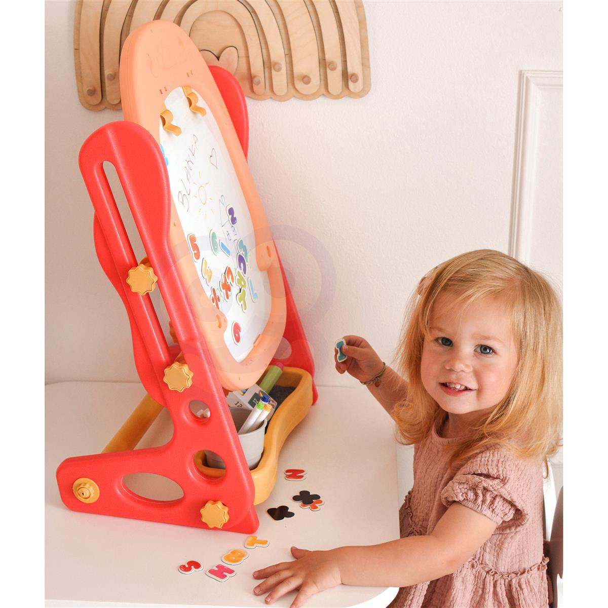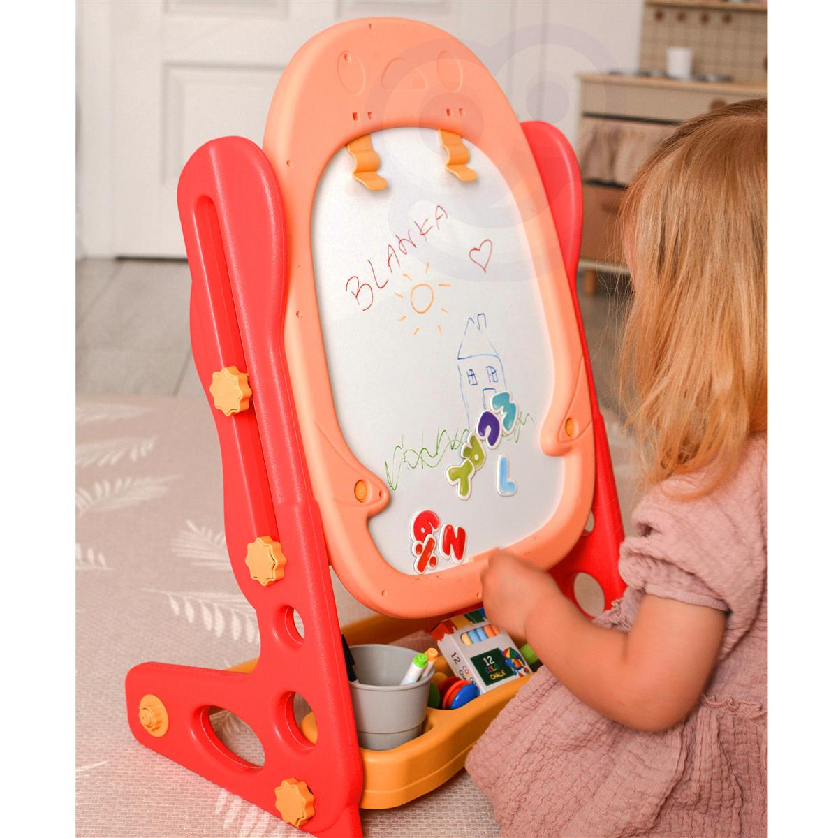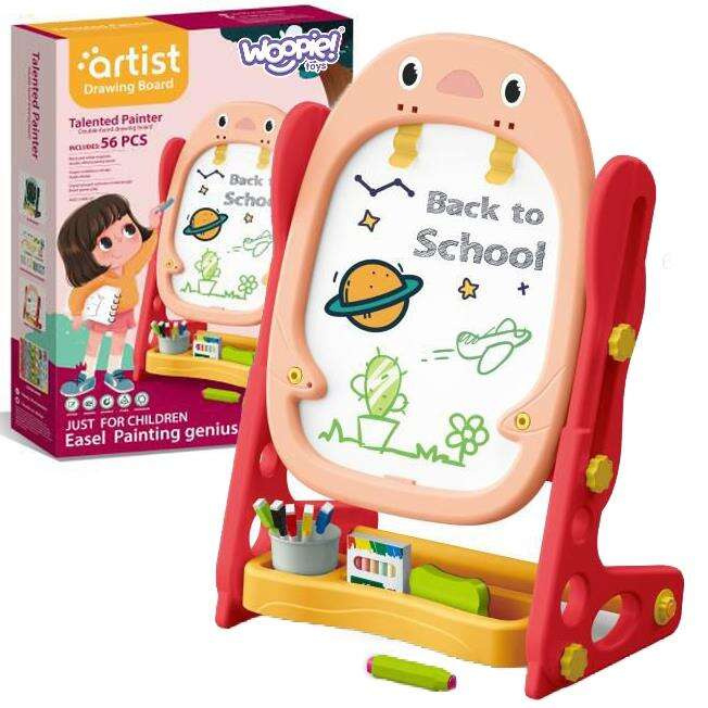 Dwustronna Tablica Magnetyczna do Rysowania od marki WOOPIE to wszechstronne narzędzie do nauki i pogłębiania zdolności artystycznych. Zestaw zawiera pełen pakiet akcesoriów do wszechstronnego użytkowania. Tablica jest prosta w montażu i dodatkowo posiada regulacje wysokości, dzięki czemu można ja dopasować do każdego dziecka. Zabawka jest niezbędna do codziennego rozwoju dziecka.