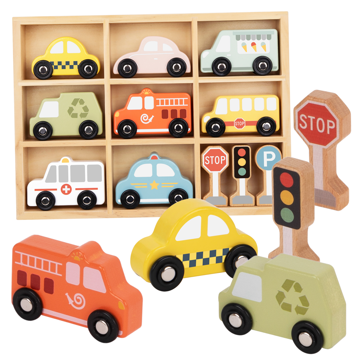 Zestaw Pojazdów i Znaków Drogowych od Tooky Toy to idealny sposób na naukę zasad poruszania się po drodze. Zestaw zawiera 8 różnych pojazdów oraz 3 znaki drogowe w pięknych pastelowych kolorach. Poprzez zabawę dziecko uczy się znaków drogowych, a kolorowe pojazdy umilą mu zabawę. Całość wykonana z najwyższej jakości materiałów i pomalowana nietoksycznymi farbami bezpiecznymi dla dzieci i środowiska.