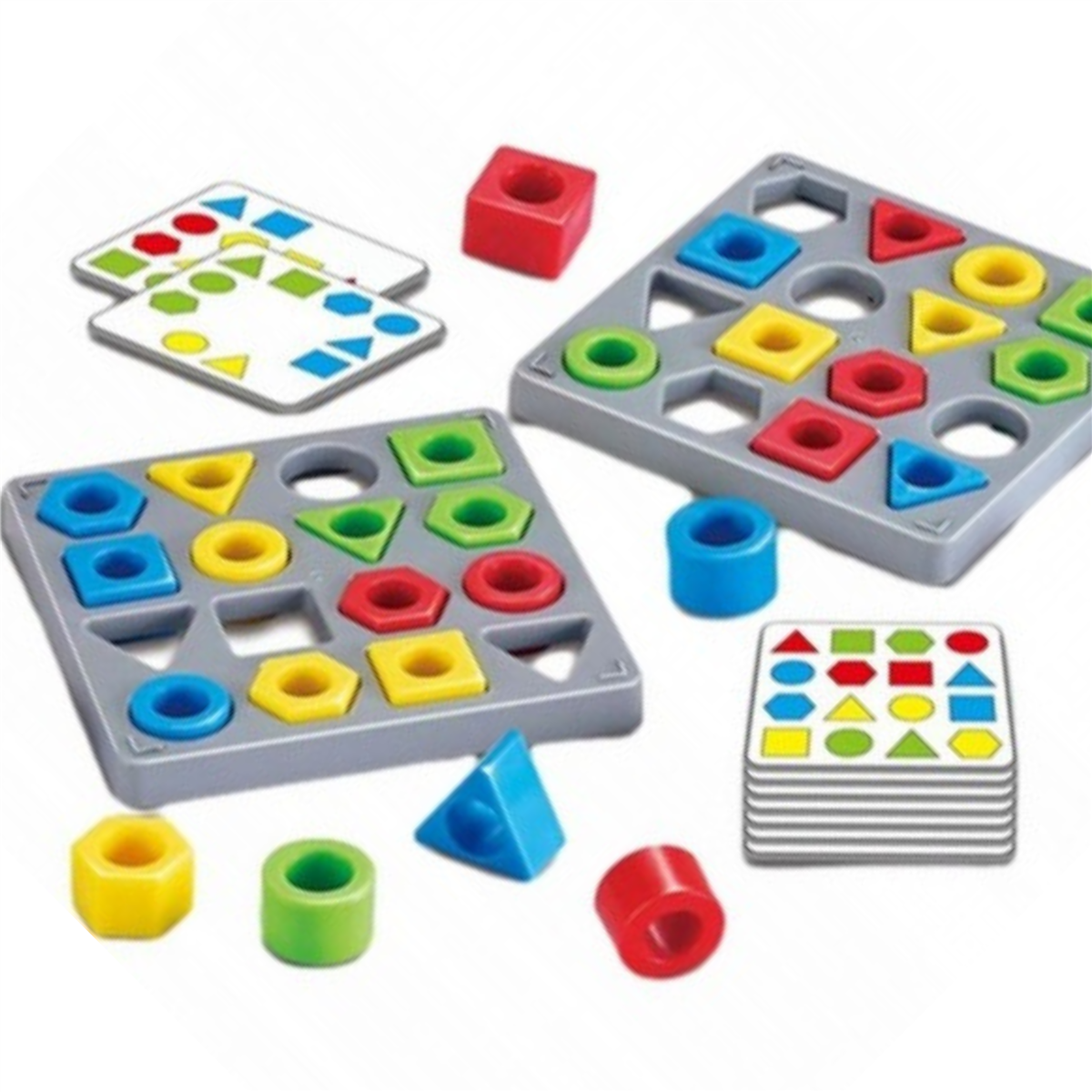 Zabawa polega na ułożeniu na podkładce wzoru, który został wylosowany przez gracza. Zgadzać musi się zarówno układ jak i kolory figur geometrycznych.