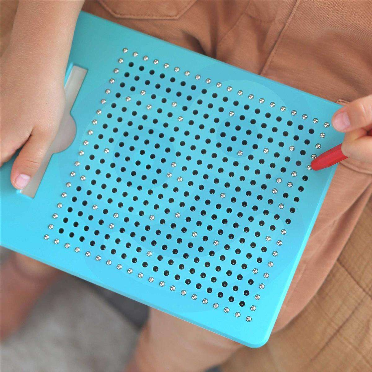 - - rysowanie polega na przyciąganiu metalowych kuleczek w tablicy za pomocą rysika,