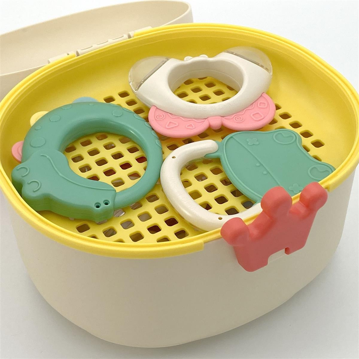 - - bębenkowy pojemnik do przechowywania, w którym możemy suszyć zabawki po wyparzeniu,
