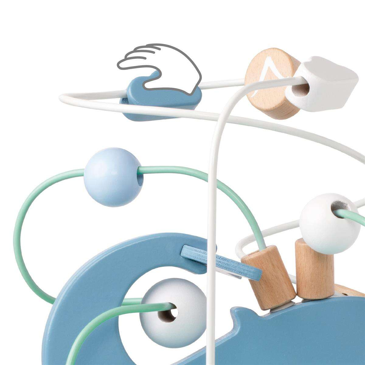 Labirynt Przeplatanka Życie Morskie od marki CLASSIC WORLD to piękna nowoczesna pastelowa zabawka, wspierająca zdolności motoryczne dziecka, jednocześnie wprowadzając w piękny świat życia w ocenie. Dzieci mogą przesuwać bańki i kulki w kształcie ptaków wokół wieloryba, nad lub pod morzem. Mały wieloryb pływa wokół matki i przepływa pomiędzy wodorostami, rybami i nie tylko. Drewniana przeplatanka to świetna zabawka sensoryczna, która pozwala dziecku trenować sprawność rączek.